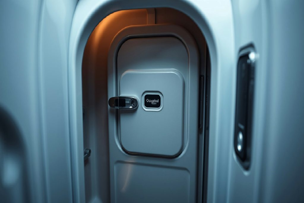 Le porte dei bagni sugli aerei hanno un meccanismo speciale che permette all’equipaggio di aprirle dall’esterno, senza mettere a rischio nessuno. Non è una cosa visibile a occhio nudo: spesso è nascosto dietro l’indicatore “occupato/libero” o sotto un piccolo pannello discreto, pensato proprio per non essere toccato dai passeggeri.