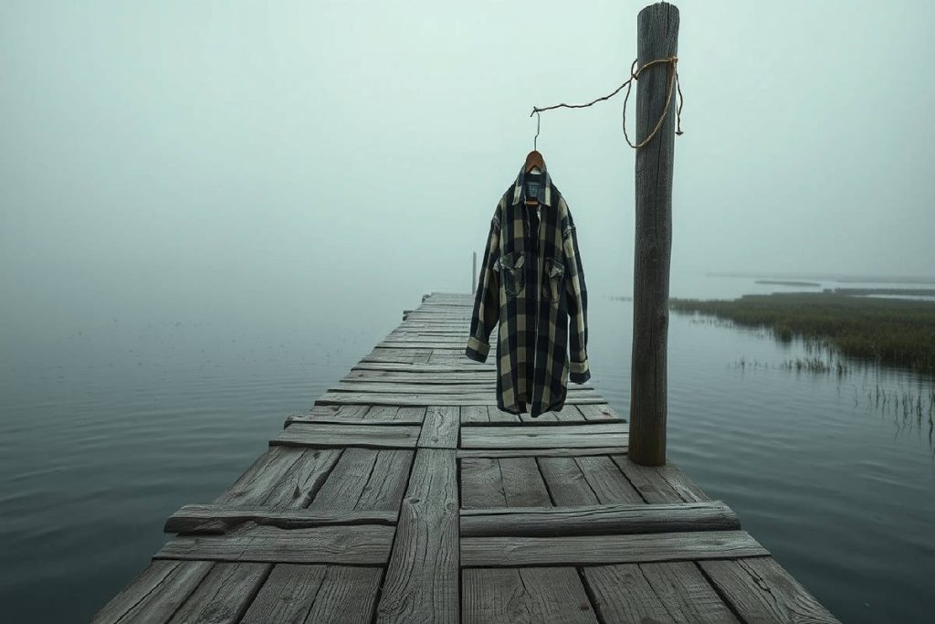 Il vecchio molo di legno si staglia contro un cielo grigio, le assi scricchiolano sotto il peso del tempo e dei ricordi. È il North Carolina, 2026, e l’aria è spessa di zanzare e silenzi non detti. Una camicia a quadri, troppo larga, ondeggia nel vento tiepido: dentro, un amore che non trova pace, bloccato in una palude di rimpianti. Qui la vita sembra rallentare, quasi fermarsi, ma sotto quella calma apparente si nasconde un’energia invisibile, un filo sottile che lega passato e presente, realtà e sogno. In questo angolo dimenticato, ogni emozione resta sospesa, come un respiro trattenuto.