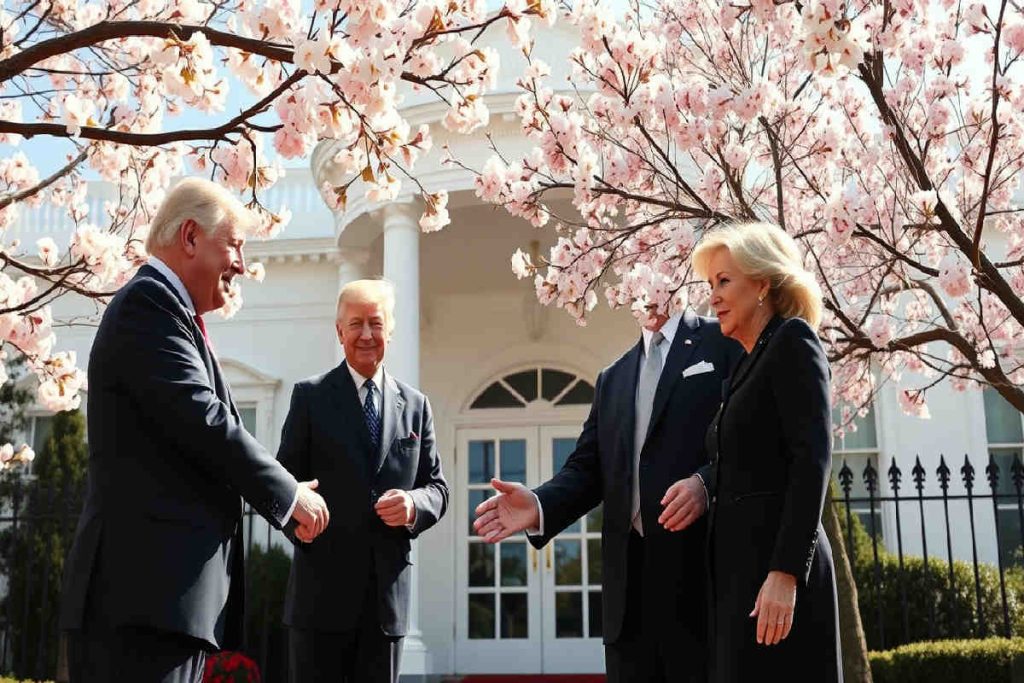 Fiori di ciliegio e atmosfera: la Casa Bianca si fa teatro